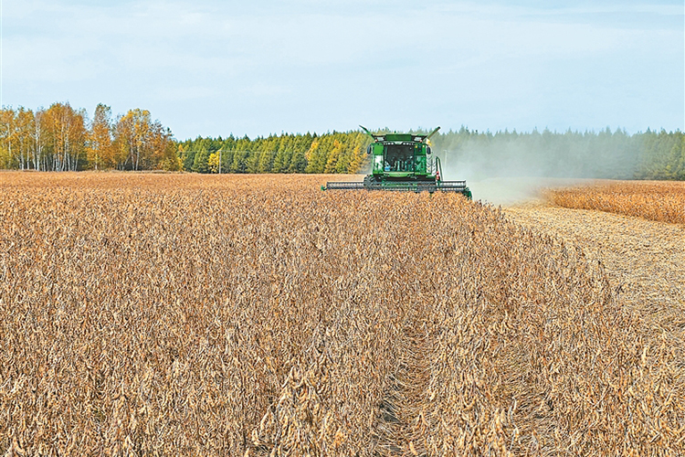 五大連池農(nóng)場(chǎng)大豆收獲告捷