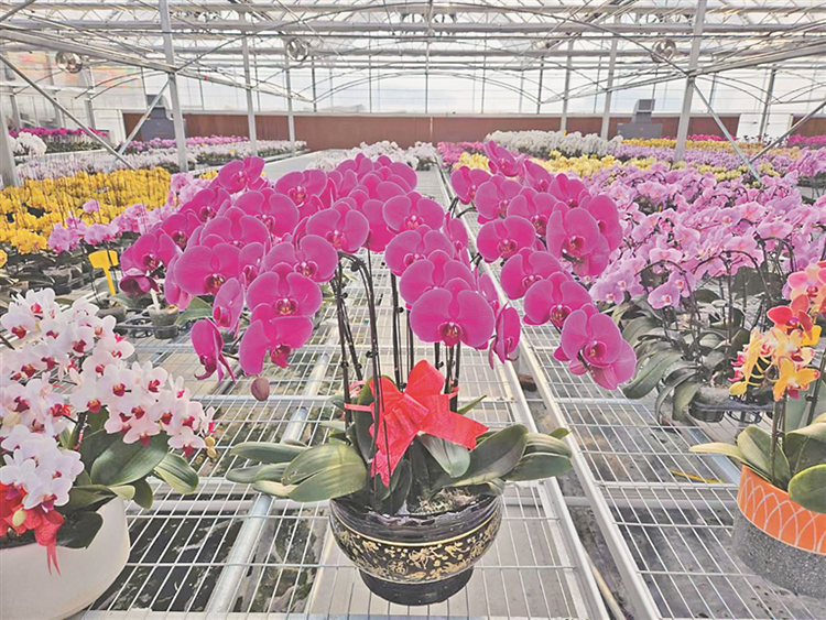 哈爾濱市道里區(qū)榆樹鎮(zhèn)新鄉(xiāng)村的現(xiàn)代化花卉溫室大棚內(nèi),上百種色彩艷麗的蝴蝶蘭花含苞待放,它們將在12月底陸續(xù)上市,裝點(diǎn)市民的生活。哈爾濱花間集農(nóng)業(yè)科技有限公司負(fù)責(zé)人劉鵬說,這里采用新型雙層膜充氣聯(lián)動(dòng)溫室培育種植蝴蝶蘭等花卉苗木。采取“公司+基地+農(nóng)戶”的合作模式,蝴蝶蘭年產(chǎn)量可達(dá)30萬至40萬株,2023年全年實(shí)現(xiàn)毛利潤400萬至500萬元。