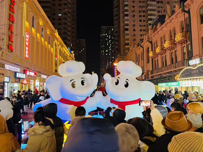 除了“白象”標志性小象IP格外吸睛之外,因其與“對象”諧音的巧妙設計,也吸引著往來行人紛紛駐足。雪雕前人潮涌動,不少市民游客在“對象”前合影留念。這一創(chuàng)意不僅為游客增添別樣的溫暖與歡樂,也在社交媒體掀起一陣“找對象”的熱潮。活動期間,“對象雪雕走紅哈爾濱”的話題登上熱搜榜。不少網(wǎng)友調(diào)侃:“這就去哈爾濱找對象。”也有人表示,看完小象雪雕,感覺爾濱的冬天都充滿了浪漫的氣息。