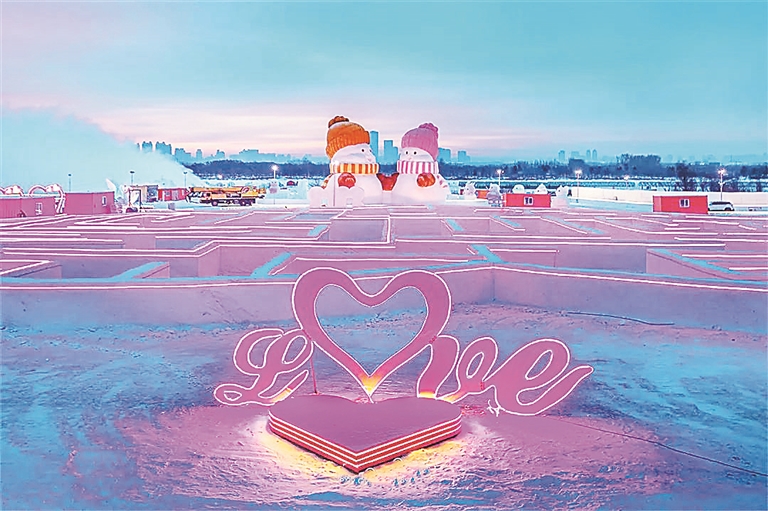 日前,坐落于哈爾濱大劇院西南江面的“爾濱之心歡樂島”開園。這是一座以“愛”為名設(shè)計建造的冰雪主題樂園,總面積約60萬平方米,共有56處心形景觀,還有“冰封玫瑰”和大雪人,“島”內(nèi)愛意滿滿,吸引了不少游客前來打卡拍照。