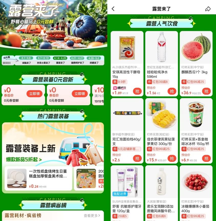 為了更好激活春日戶外消費活力,據(jù)悉,即日起至4月20日,消費者上餓了么搜“露營季”即有機會獲得餓了么每天提供的萬張0元嘗鮮免單券,優(yōu)惠覆蓋了包含水果、零食、戶外裝備等在內(nèi)的諸多品類。(餓了么)