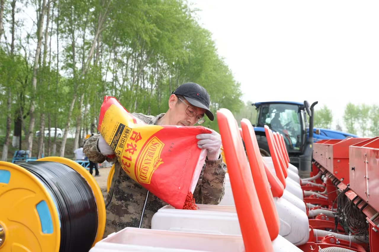 走進(jìn)新華鄉(xiāng)康英華農(nóng)業(yè)種植合作社的耕地,3臺(tái)播種機(jī)轟鳴運(yùn)轉(zhuǎn),正在田間勻速前行,進(jìn)行玉米播種作業(yè)。該合作社理事長(zhǎng)康英華介紹:“我們從五月初開(kāi)始,每天播種320到350畝左右,現(xiàn)在新型的播種機(jī)精準(zhǔn)度比起以前提高了很多,大大提升了播種效率?!毕冗M(jìn)的機(jī)械設(shè)備為農(nóng)業(yè)生產(chǎn)注入了強(qiáng)大動(dòng)力,而糧食產(chǎn)量的提升還需“良種”、“良法”來(lái)配套??涤⑷A選用了適宜該地塊大壟雙行密植栽培模式的玉米品種,每畝產(chǎn)量可達(dá)2000斤。