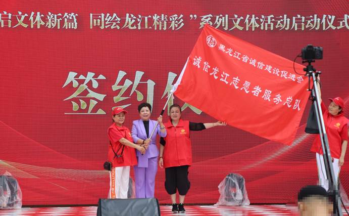 在誠(chéng)信龍江志愿服務(wù)總隊(duì)成立儀式上,張波會(huì)長(zhǎng)莊重地將象征“奉獻(xiàn)、友愛、互助、進(jìn)步”精神的“誠(chéng)信龍江志愿者服務(wù)總隊(duì)”隊(duì)旗,授予首任隊(duì)長(zhǎng)。這面旗幟的傳遞,標(biāo)志著一支服務(wù)社會(huì)、傳播誠(chéng)信理念的專業(yè)志愿隊(duì)伍正式啟航。未來,志愿者們將深度融入系列文體活動(dòng)的組織、服務(wù)與宣傳,以行動(dòng)詮釋志愿精神,用熱忱擦亮“誠(chéng)信龍江”品牌,為活動(dòng)成功舉辦和誠(chéng)信文化播撒注入強(qiáng)勁的志愿力量。