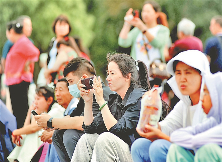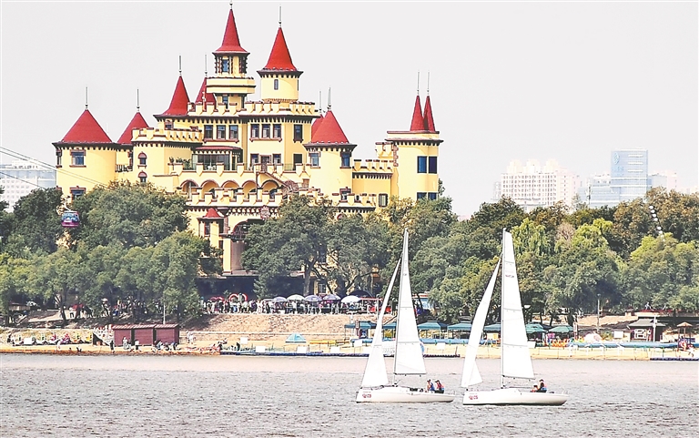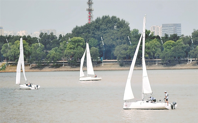 近日,哈爾濱市道里區(qū)防洪紀念塔附近的松花江畔,許多游客在觀光游玩。江面上,四五艘白色帆船劈波斬浪,來回穿行,吸引了人們的目光,一些游客用手機記錄下精彩瞬間。江邊臺階上坐滿了人,大家看著帆船表演,吹著涼爽江風(fēng),觀賞著江畔美景,舒適又愜意。