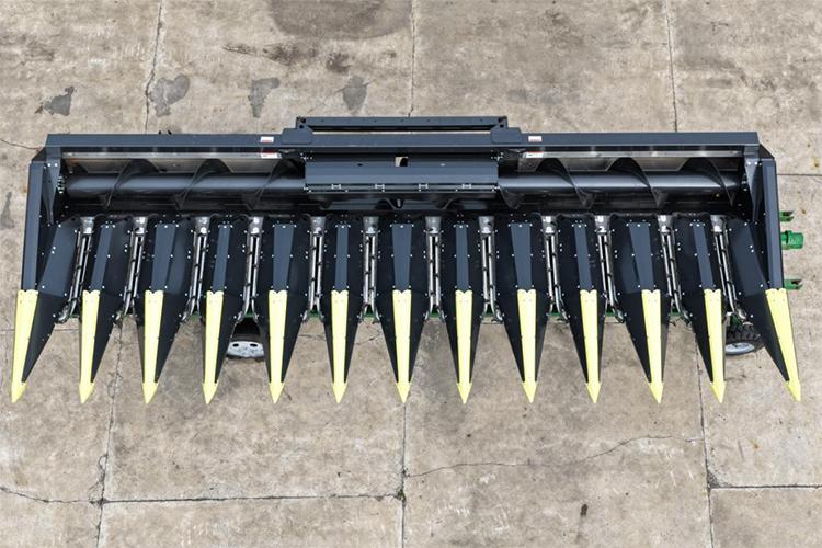 現(xiàn)場(chǎng)會(huì)上,最讓人駐足的是現(xiàn)場(chǎng)展示的意大利卓收割臺(tái), 此次引入的卓收割臺(tái),其自動(dòng)摘穗板每行單元可實(shí)現(xiàn)自動(dòng)開合且?guī)в袦p震功能,能根據(jù)玉米粗細(xì)靈活調(diào)節(jié)間隙,有效解決了其他品牌割臺(tái)無(wú)法對(duì)每行每株精準(zhǔn)適配的問(wèn)題;同時(shí),收割臺(tái)的拉莖輥長(zhǎng)度較其他品牌割臺(tái)增加 8 公分,讓割臺(tái)更貼合地面,在收獲倒伏玉米時(shí)作業(yè)角度更優(yōu),大幅減少 “跳棒” 現(xiàn)象。此外,卓收割臺(tái)的拉莖輥及刀片采用螺栓固定設(shè)計(jì),可隨時(shí)調(diào)整位置或更換部件,避免了其他割臺(tái)因拉莖輥及刀片為一體式設(shè)計(jì)、損壞后需整體更換的弊端。