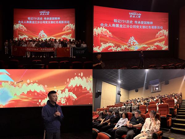 為深切緬懷革命先輩,大力弘揚(yáng)愛(ài)國(guó)主義精神,進(jìn)一步增強(qiáng)全體人員的歷史責(zé)任感與崗位擔(dān)當(dāng)意識(shí),合眾人壽黑龍江分公司黨支部組織開展“銘記731歷史,傳承愛(ài)國(guó)精神”紅色觀影活動(dòng)。在黨支部書記的帶領(lǐng)下,分公司黨員、入黨積極分子、內(nèi)勤全體員工及個(gè)險(xiǎn)/銀保/收展渠道外勤黨員共同參與,通過(guò)觀看歷史題材影片《731》,重溫那段刻骨銘心的歷史。