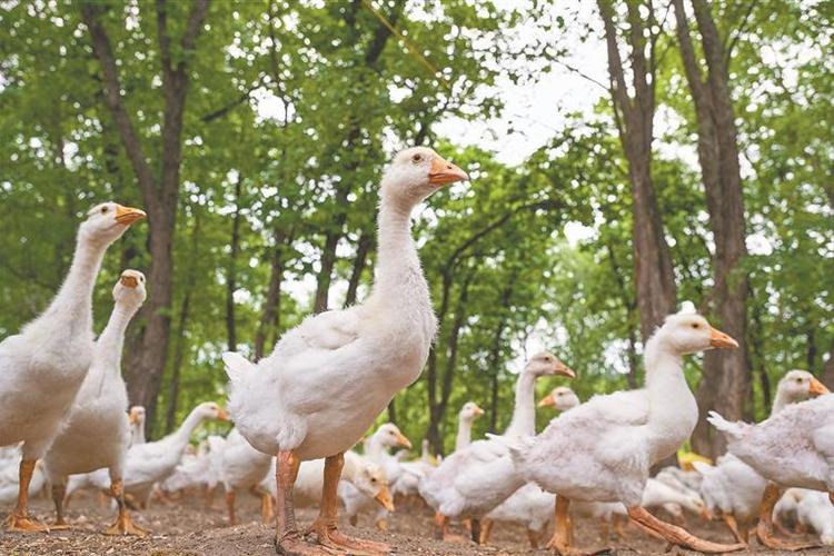 林下養(yǎng)鵝,“森林+”致富路子多。本報(bào)記者 唐海兵攝
