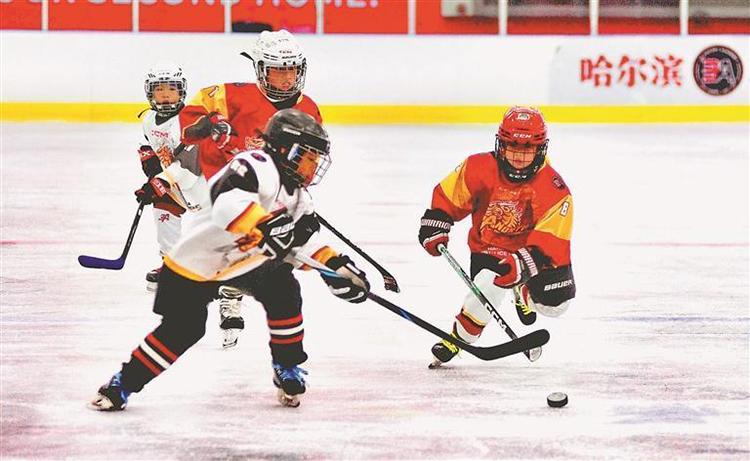 3日,在哈爾濱市南崗區(qū)炫采冰上運動中心氣膜冰場內(nèi),一場精彩的冰球比賽正在進行中。突破、傳球、射門……參賽隊員大都是十歲左右的少年,但他們的拼搏精神并不亞于成年專業(yè)運動員。本報記者 蘇強攝