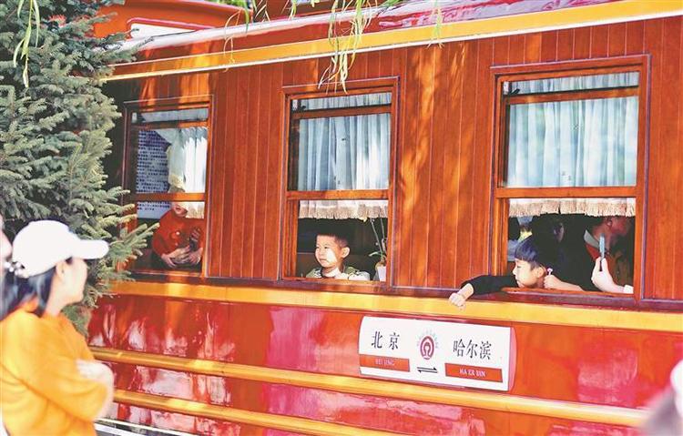 2日,在哈爾濱市兒童公園內(nèi),許多家長帶著孩子坐上小火車,一路歡笑地觀賞鐵軌沿線的美麗秋色。本報記者 蘇強攝