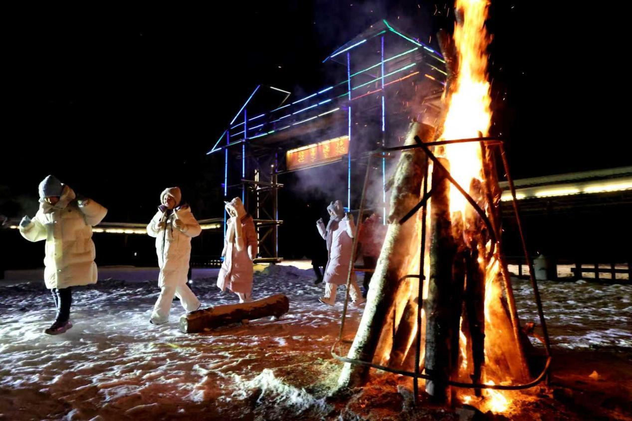 為讓游客盡情解鎖冰雪玩法,阿木爾林業(yè)局在龍河驛站專門設(shè)置篝火區(qū),當熊熊篝火燃起,大家圍著篝火載歌載舞,盡情沉醉在冰雪帶來的野趣與浪漫之中?!斑@潔白無瑕、晶瑩剔透的冰雪,是我們南方人從未見過的美景,太有吸引力了!”來自河南焦作的游客劉永甜興奮地說。龍河驛站還精心推出地道東北風味餐飲,排骨燉豆角、烤全羊等特色佳肴分量十足、香氣撲鼻,讓每一位游客大快朵頤、口齒留香。