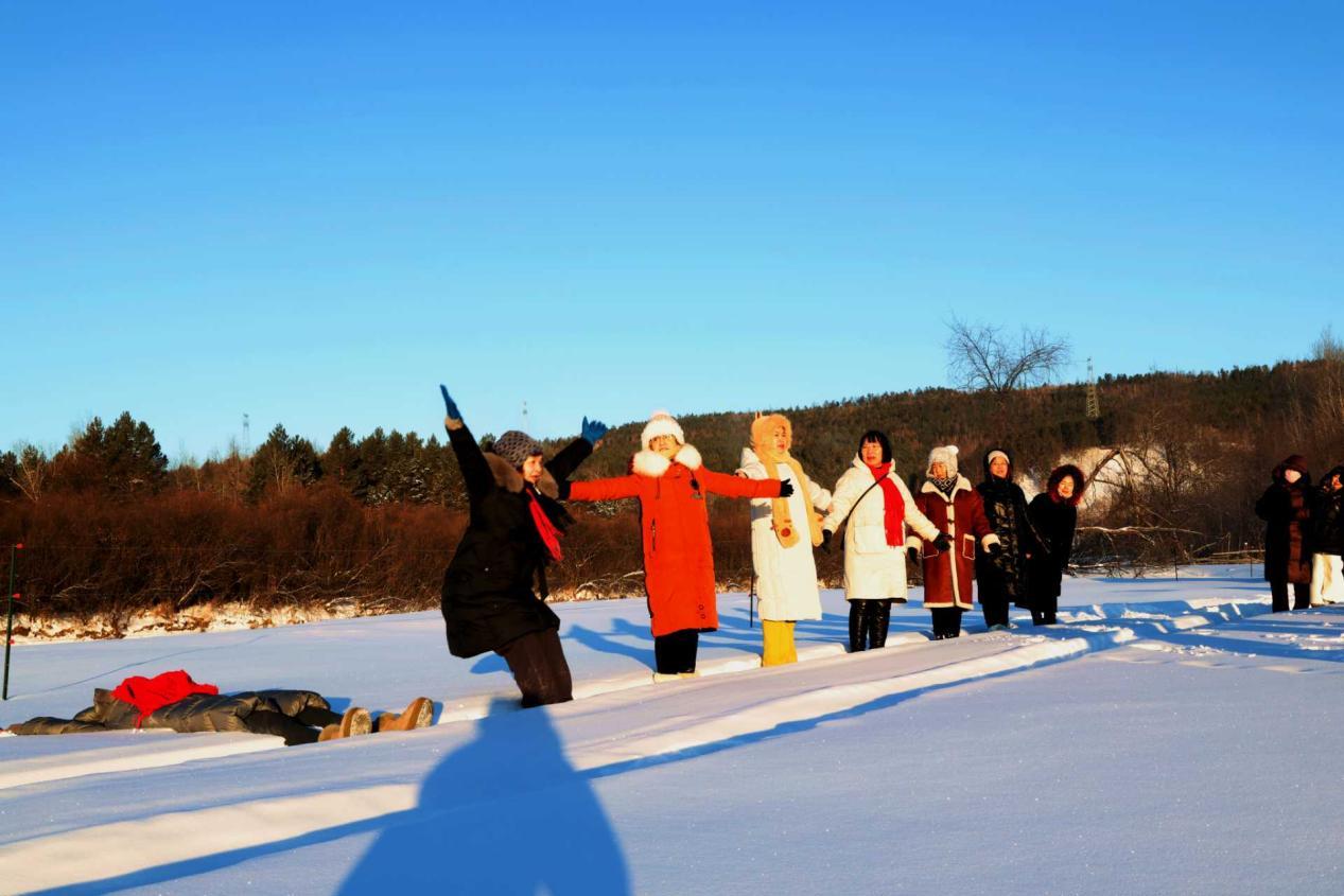 黑龍江省詩詞協(xié)會(huì)采風(fēng)團(tuán)成員在雙妃湖親身感受冰雪文化和驛站文化(王力 攝)