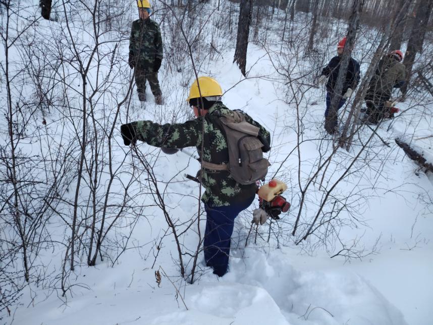規(guī)范操作不松懈,筑牢安全“防護(hù)墻”。在各營林作業(yè)現(xiàn)場,寒風(fēng)凜冽卻擋不住職工們的工作熱情。大家嚴(yán)格遵守冬季營林作業(yè)規(guī)程,統(tǒng)一佩戴安全帽穿梭在林間,有條不紊地開展林木修枝、病腐木清理、林地?fù)嵊裙ぷ鳌S弯徥謬?yán)格執(zhí)行“先檢查、再啟動(dòng)、穩(wěn)操作”的流程,精準(zhǔn)把控作業(yè)角度;撫育隊(duì)員踩著厚雪,手持工具對(duì)林間枯死木、被壓木及對(duì)目的樹種生長存在影響的進(jìn)行有序清理、歸堆。從器械檢查到流程落實(shí),每一個(gè)環(huán)節(jié)都嚴(yán)謹(jǐn)規(guī)范,安全帽上的反光條在皚皚白雪中格外醒目,成為林海間一道守護(hù)安全的風(fēng)景線。
