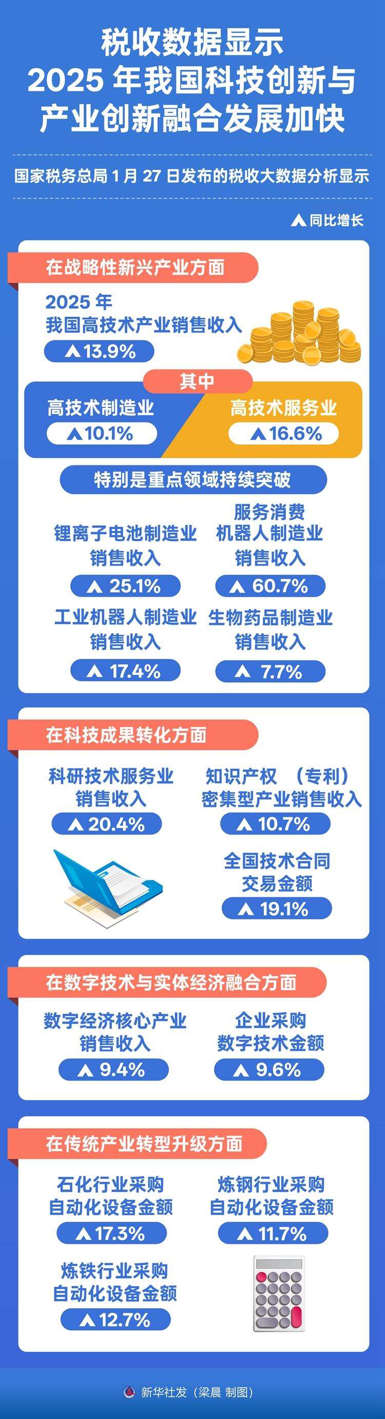 稅收數(shù)據(jù)顯示:2025年我國(guó)科技創(chuàng)新與產(chǎn)業(yè)創(chuàng)新融合發(fā)展加快
