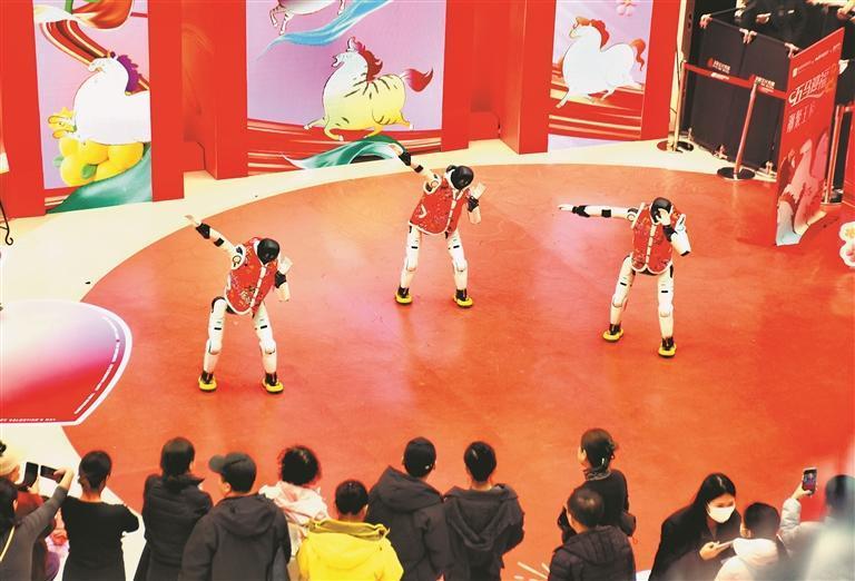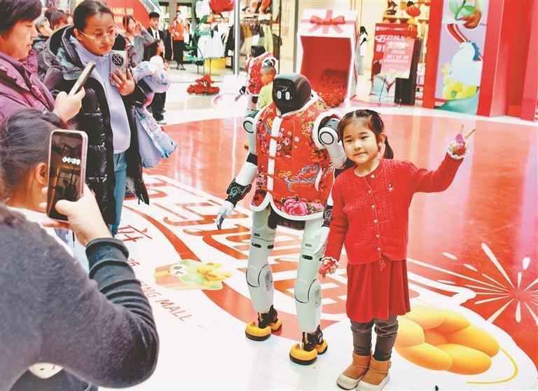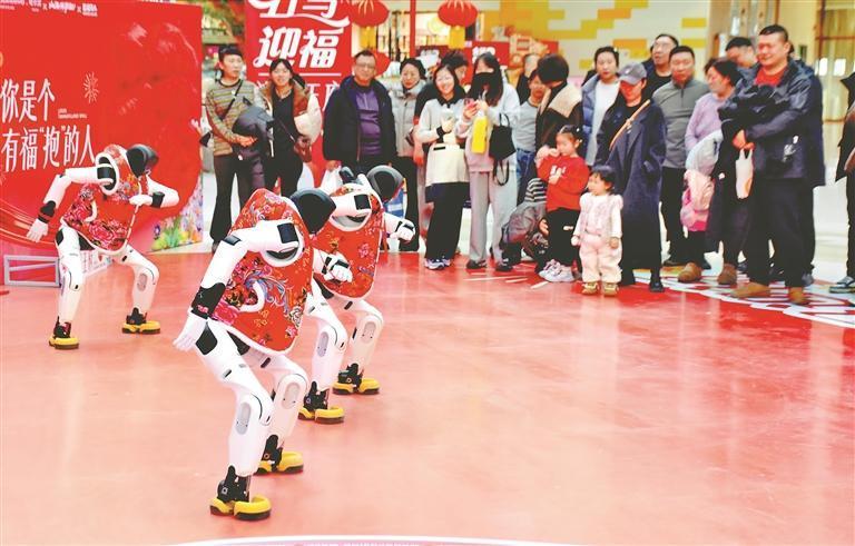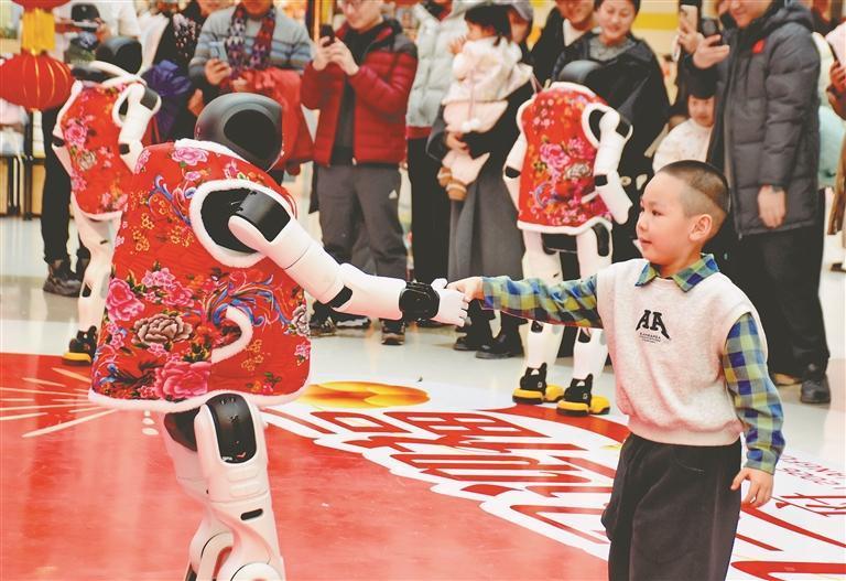 19日,正月初三。哈爾濱市道里區(qū)一家大型商場(chǎng)舉行了機(jī)器人舞蹈表演,吸引許多市民游客駐足觀看。走進(jìn)場(chǎng)地的三個(gè)機(jī)器人身高1.5米左右,穿著紅色棉坎肩,十分喜慶。在音樂伴奏下,它們翩翩起舞,動(dòng)作整齊劃一。表演結(jié)束后,機(jī)器人走進(jìn)人群,與大家握手、合影、互動(dòng)。春節(jié)假期,哈爾濱市多家商場(chǎng)都推出了機(jī)器人表演,讓市民游客與最新科技來個(gè)親密接觸。