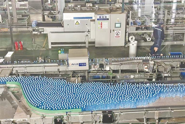 “吹瓶、灌裝、旋蓋一體機(jī)是我們生產(chǎn)線上最有含金量的設(shè)備,瓶坯經(jīng)過(guò)高溫加熱、壓縮空氣吹制,再完成灌裝、旋蓋,全程無(wú)菌操作,確保每一滴水都純潔無(wú)瑕。”生產(chǎn)車間主任劉恒介紹,該設(shè)備生產(chǎn)能力可達(dá)每秒10瓶,搭配全新的視覺(jué)檢測(cè)儀、稱重機(jī)和每分鐘可打包30箱產(chǎn)品的箱包機(jī),讓生產(chǎn)效率與產(chǎn)品標(biāo)準(zhǔn)雙提升。