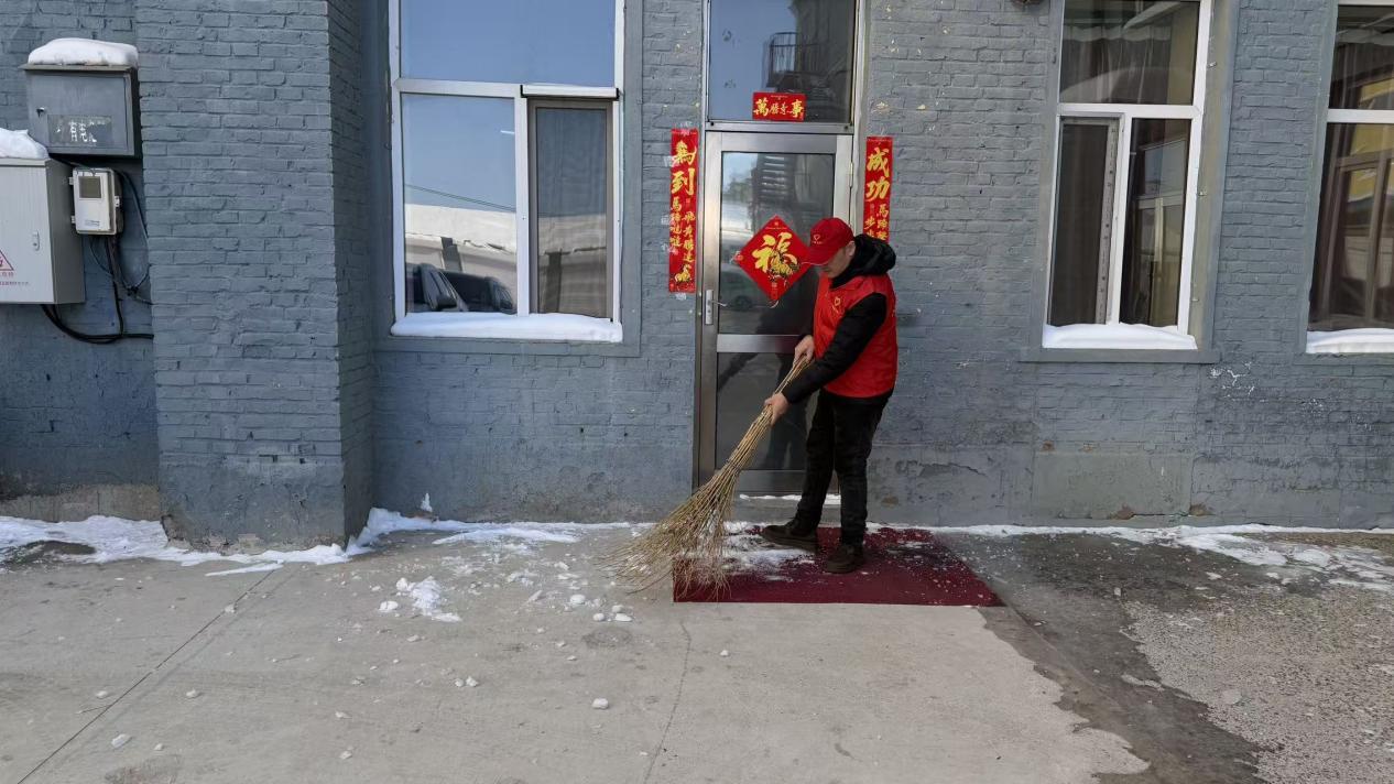 志愿者們身著紅色志愿服,清理積雪雜物、擦拭公共設施、整治衛(wèi)生死角,以實際行動美化場區(qū)環(huán)境。