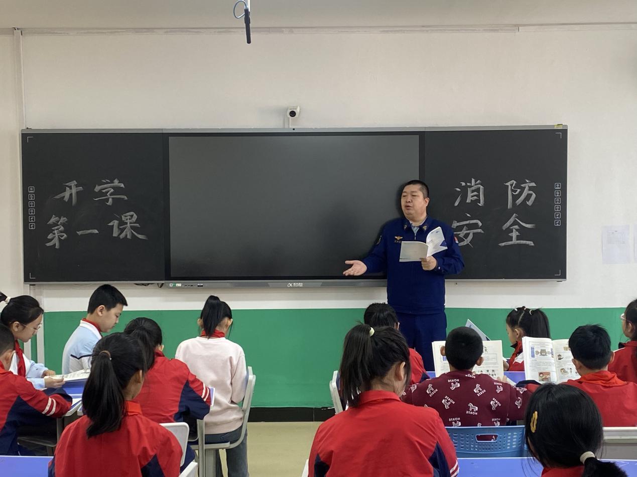 消防宣傳員在課堂上講解《中小學(xué)生消防安全讀本》中的消防安全常識(胡春磊 攝)